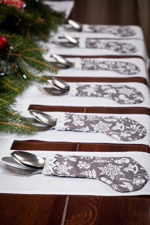 Dekoracje świąteczne Etui skarpety na sztućce szare 6 szt