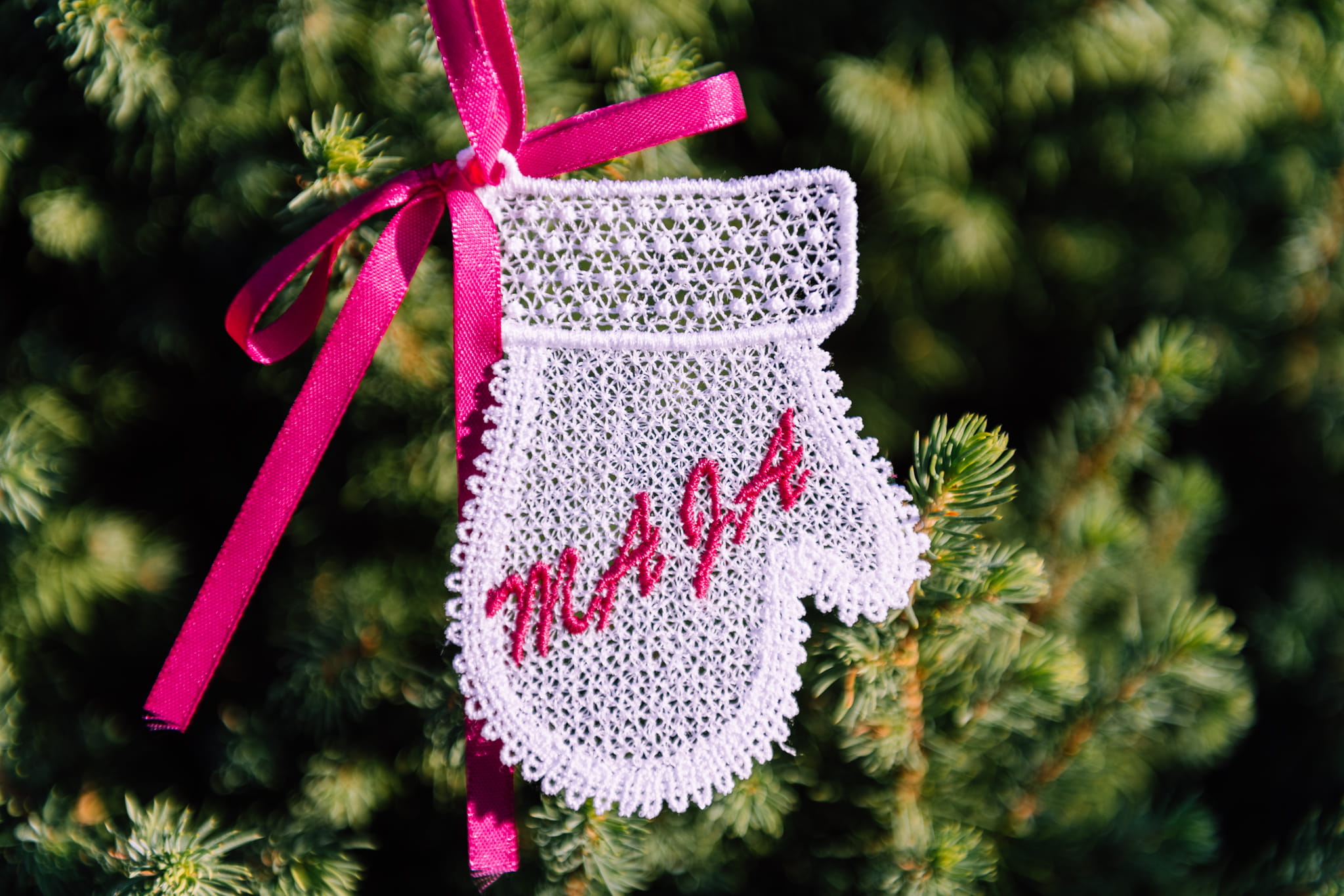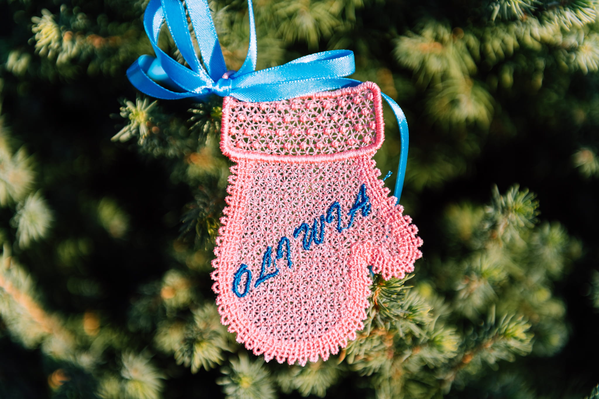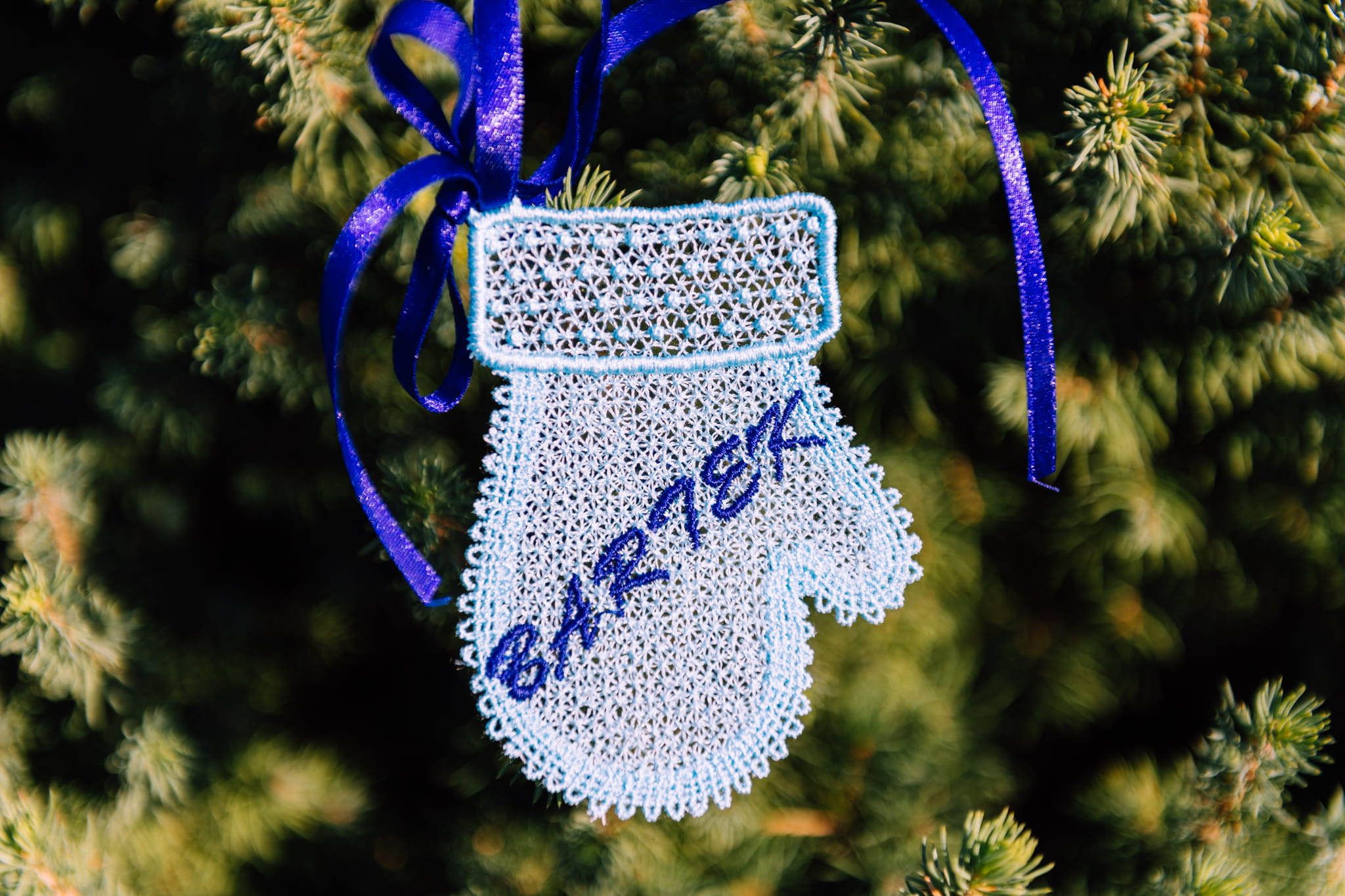 Prześliczna haftowana personalizowana zawieszka na choinkę.