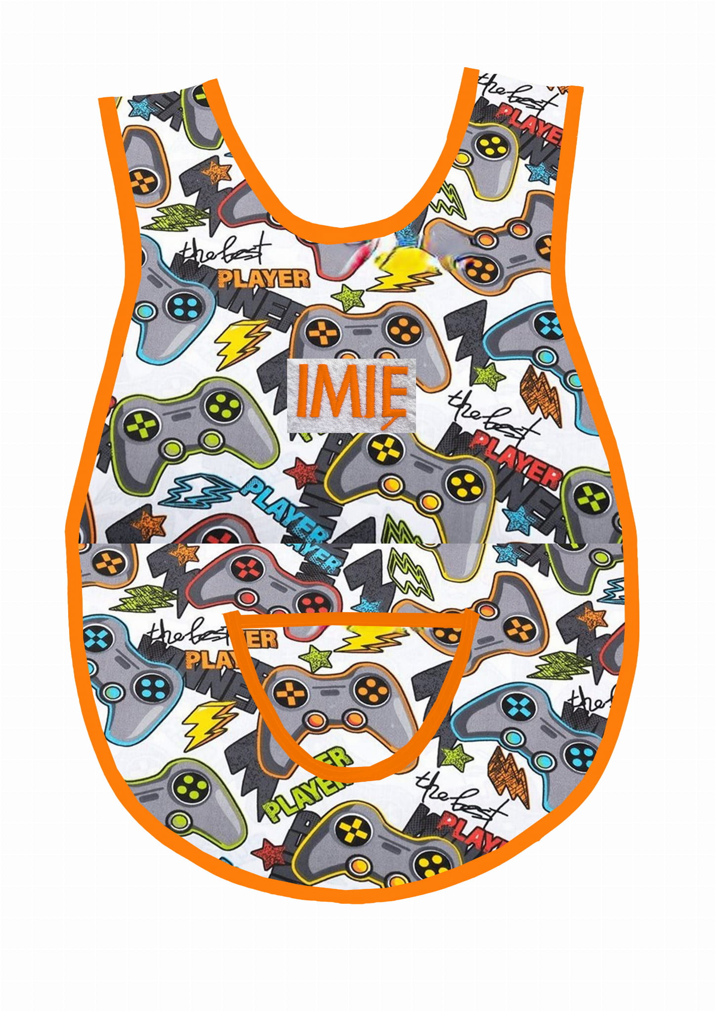 Fartuszek do przedszkola pady dla fanów gier białe tło wz 497