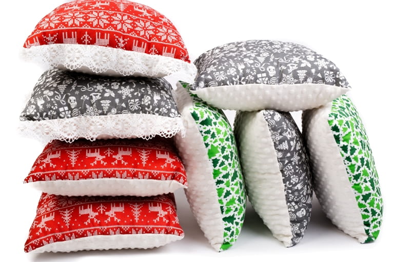 Poduszka świąteczna o wymiarach 40x40 cm lub 50x50 cm z prześlicznej bawełny z motywem świątecznym i mięciutkiego materiału minky z wypełnieniem.