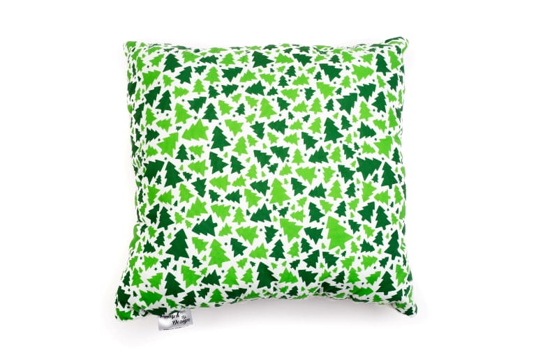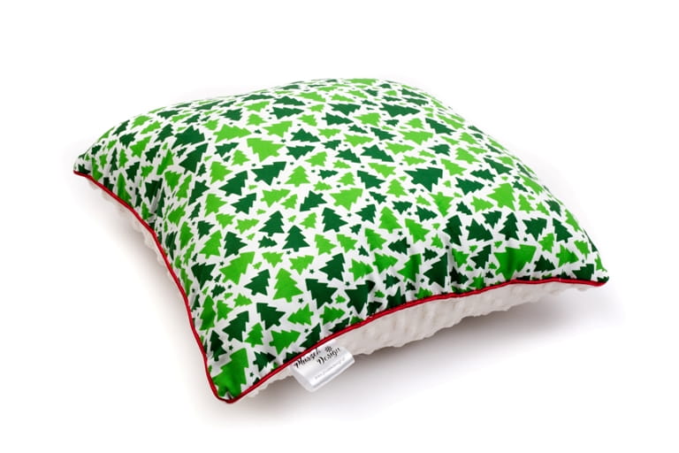 Poduszka świąteczna o wymiarach 40x40 cm lub 50x50 cm z prześlicznej bawełny w choinki i mięciutkiego materiału minky z wypełnieniem.