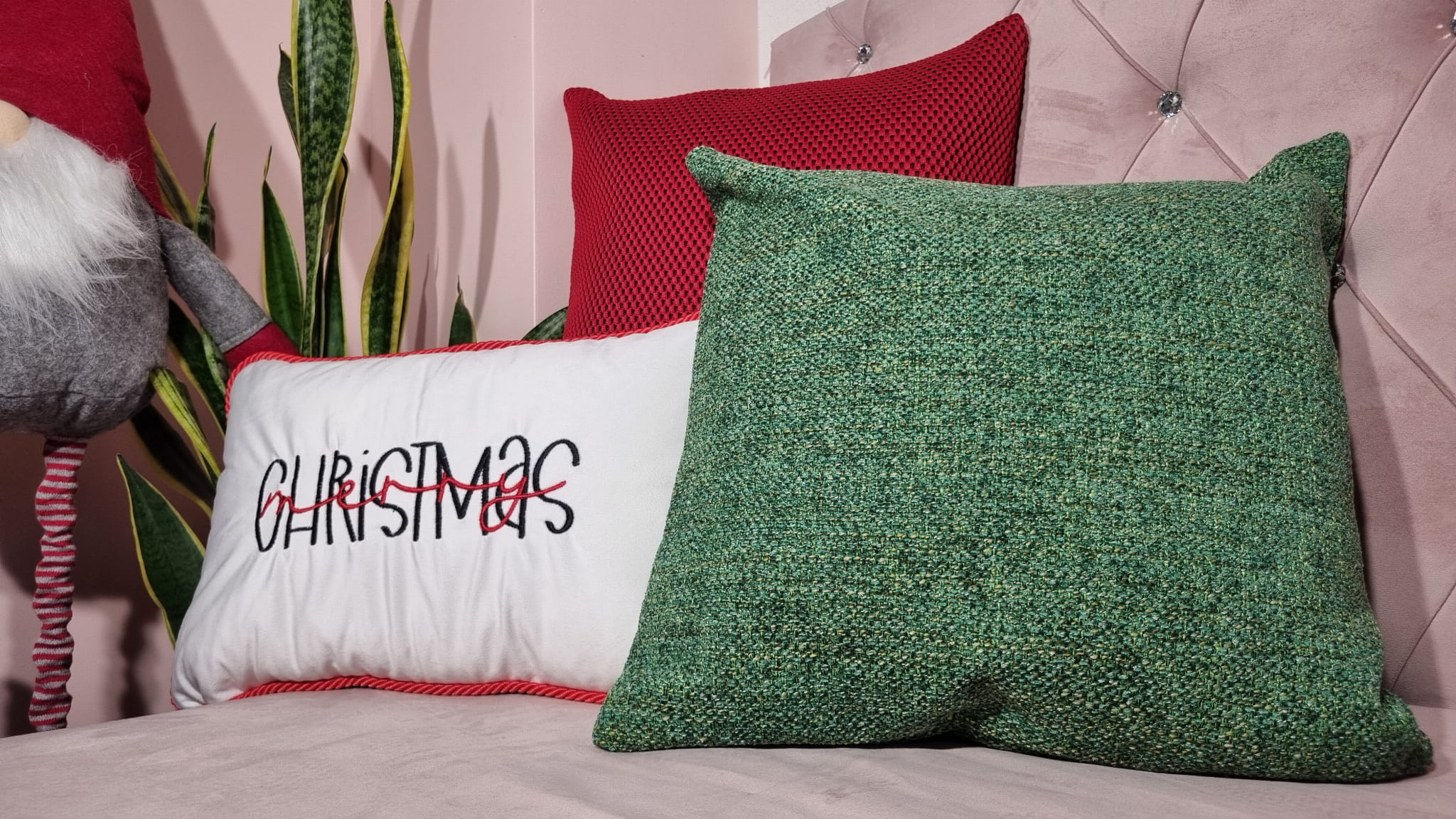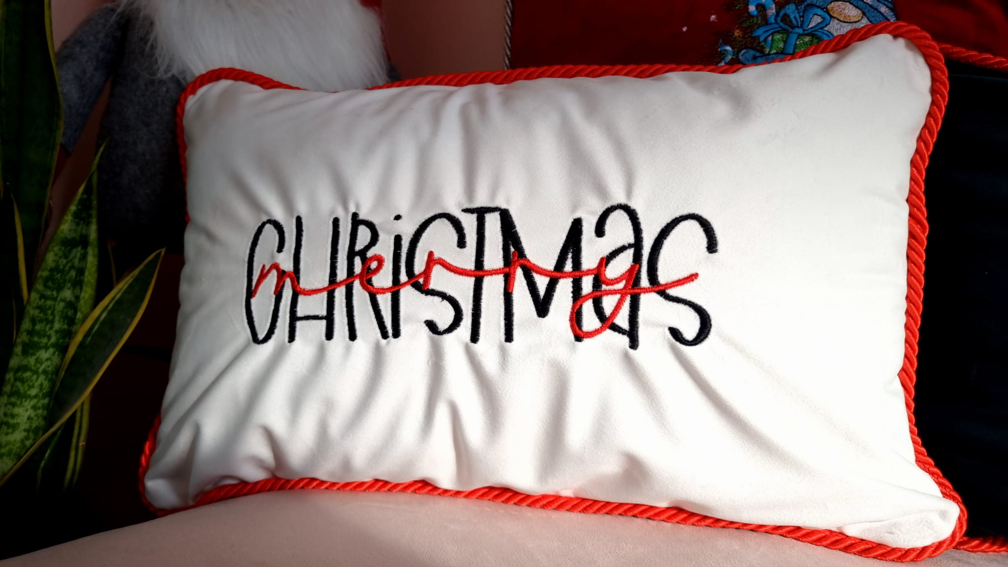Poduszka świąteczna biała z haftem Merry Christmas