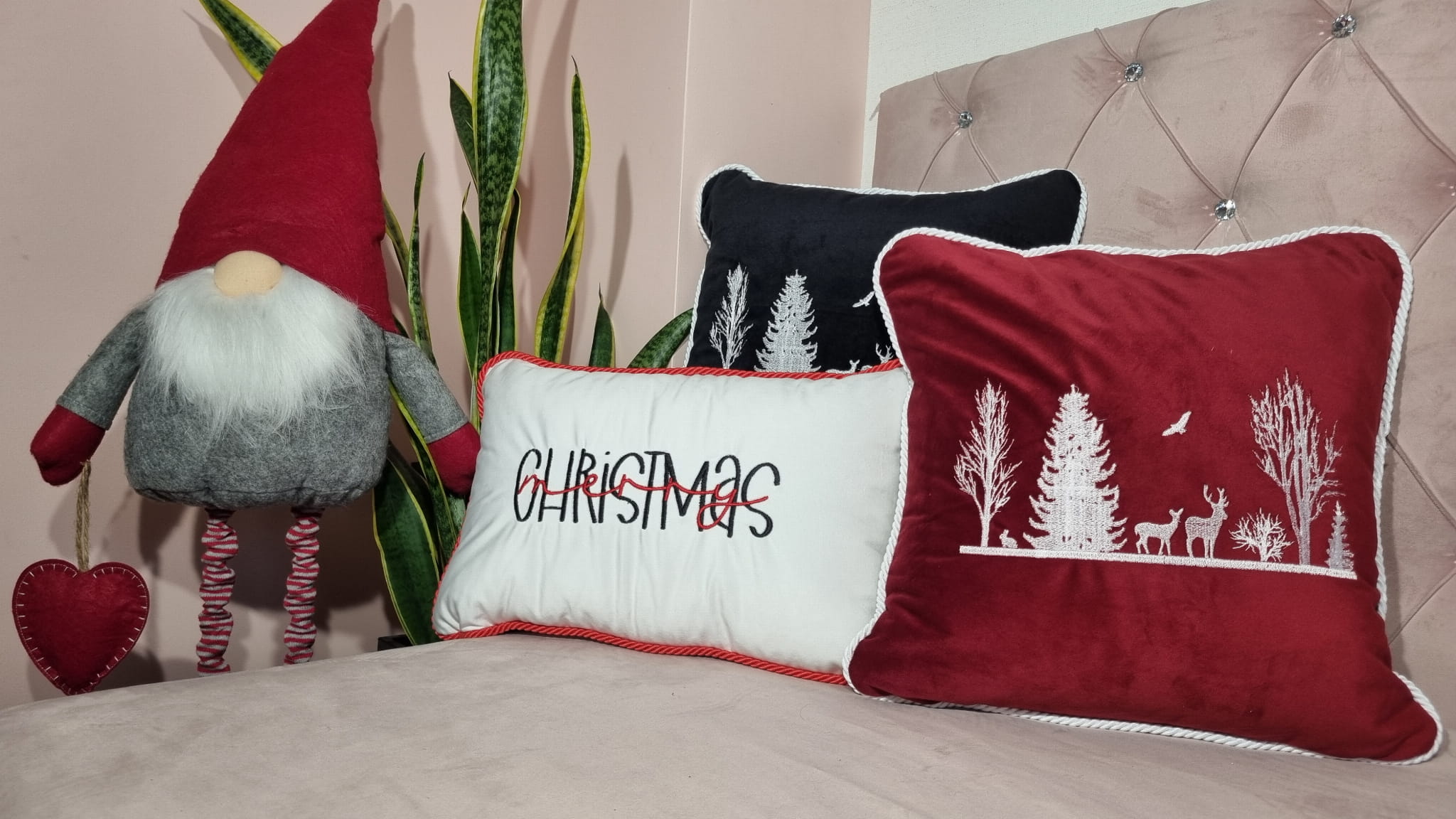 Piękna poszewka na poduszkę z oryginalnym, świątecznym motywem, wykończona ozdobnym sznurem. Miękki w dotyku, a zarazem elegancki materiał welur - magic velvet w połączeniu z prześlicznym haftem stworzą niepowtarzalny klimat w Twoim domu.