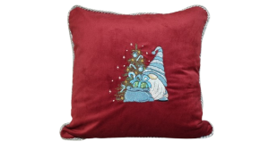 Poduszka świąteczna czerwona z haftem choinka i krasnal