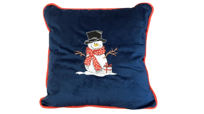 Poduszka świąteczna granatowa z haftem bałwan