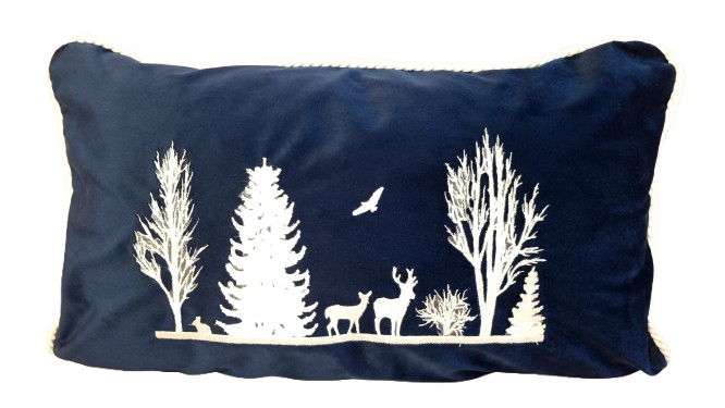 Poduszka świąteczna granatowa z haftem zimowy krajobraz