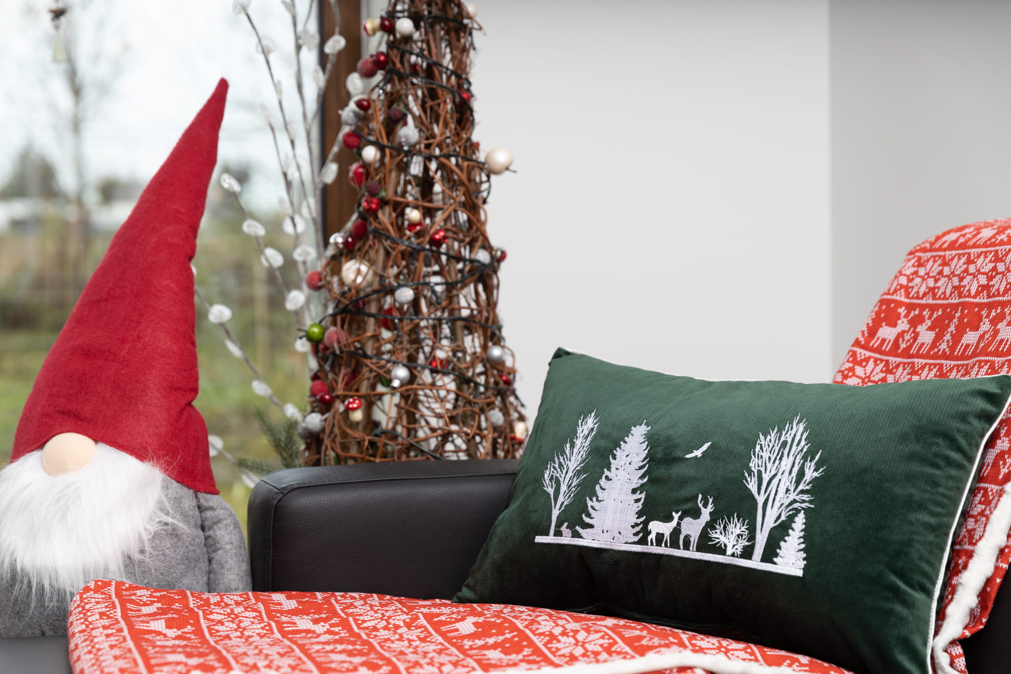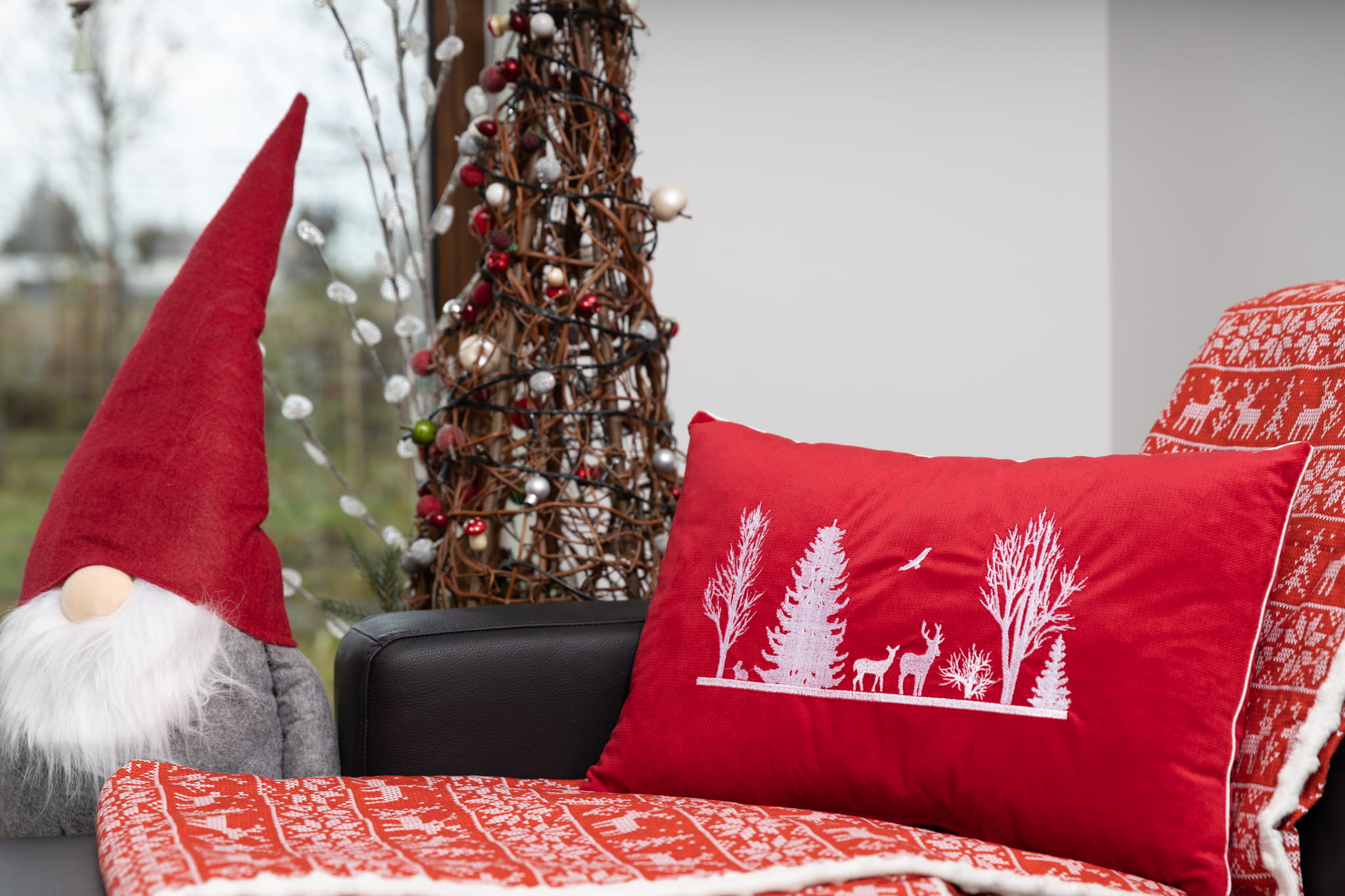 Piękna poduszka z oryginalnym, świątecznym motywem, wykończona ozdobną lamówką. Miękki w dotyku , a zarazem elegancki materiał - velvet cegiełka w połączeniu z prześlicznym haftem stworzą niepowtarzalny klimat w Twoim domu.