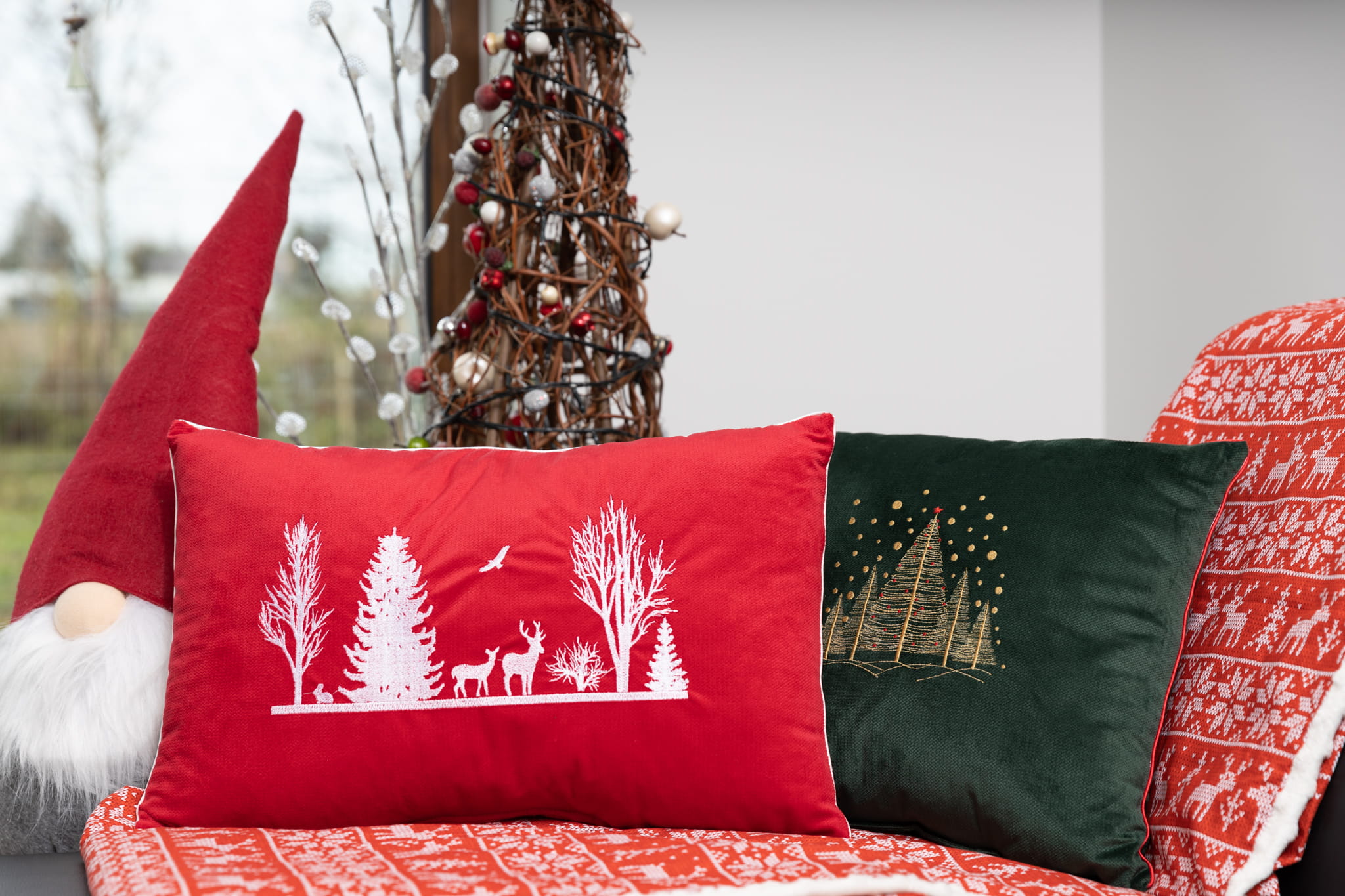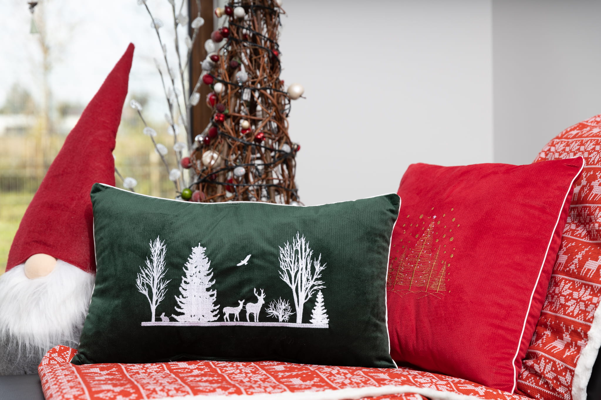 Piękna poduszka z oryginalnym, świątecznym motywem, wykończona ozdobną lamówką. Miękki w dotyku , a zarazem elegancki materiał - velvet cegiełka w połączeniu z prześlicznym haftem stworzą niepowtarzalny klimat w Twoim domu.