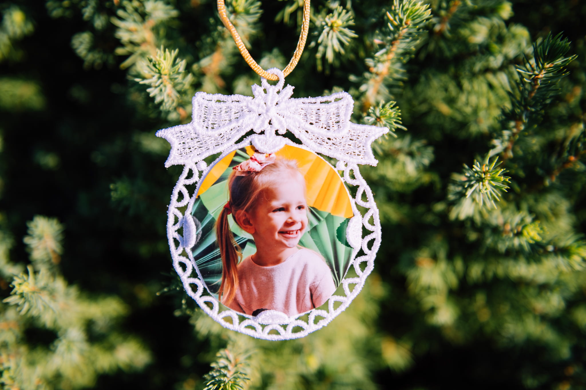 Prześliczna haftowana zawieszka na choinkę na zdjęcie.